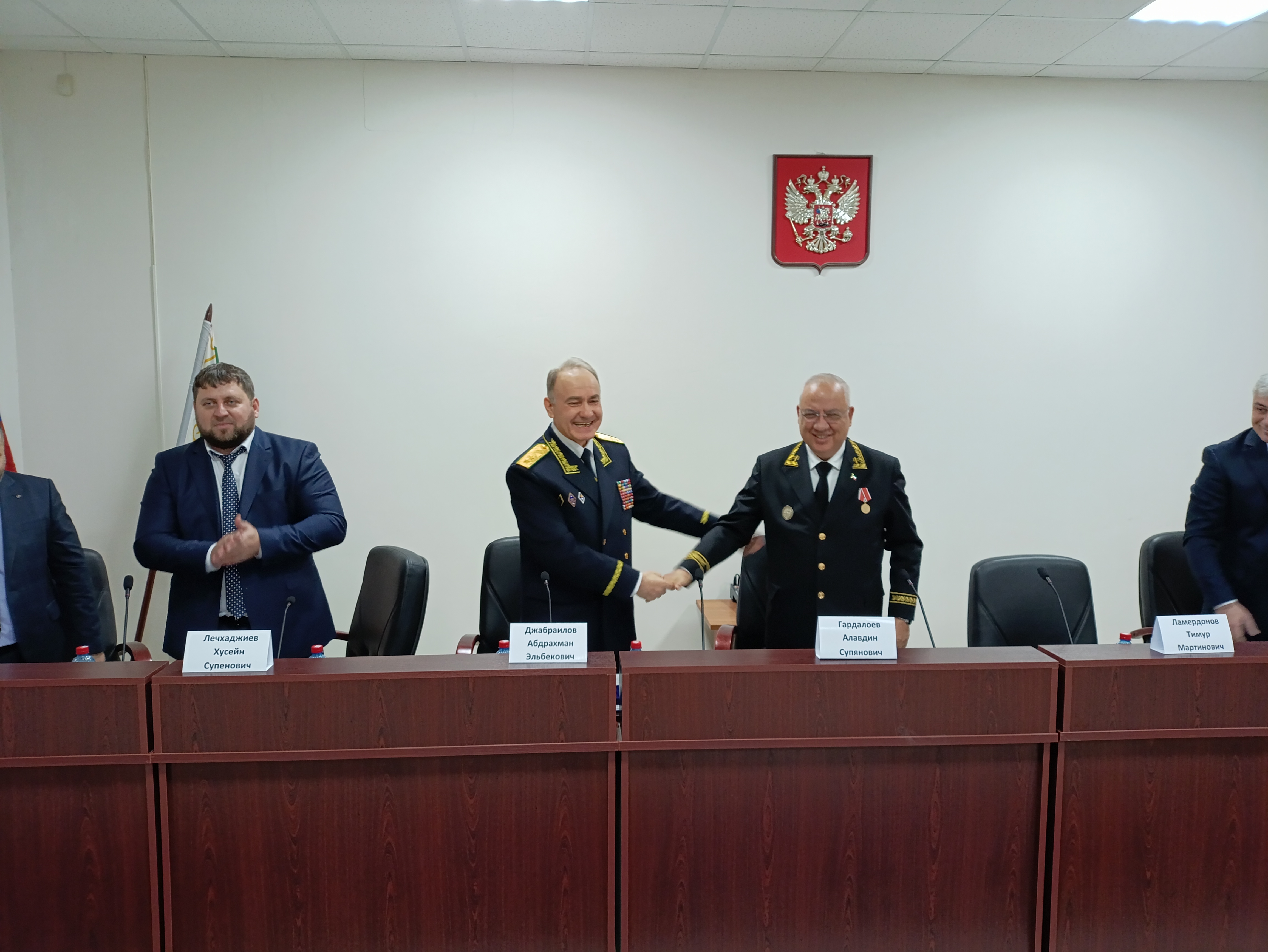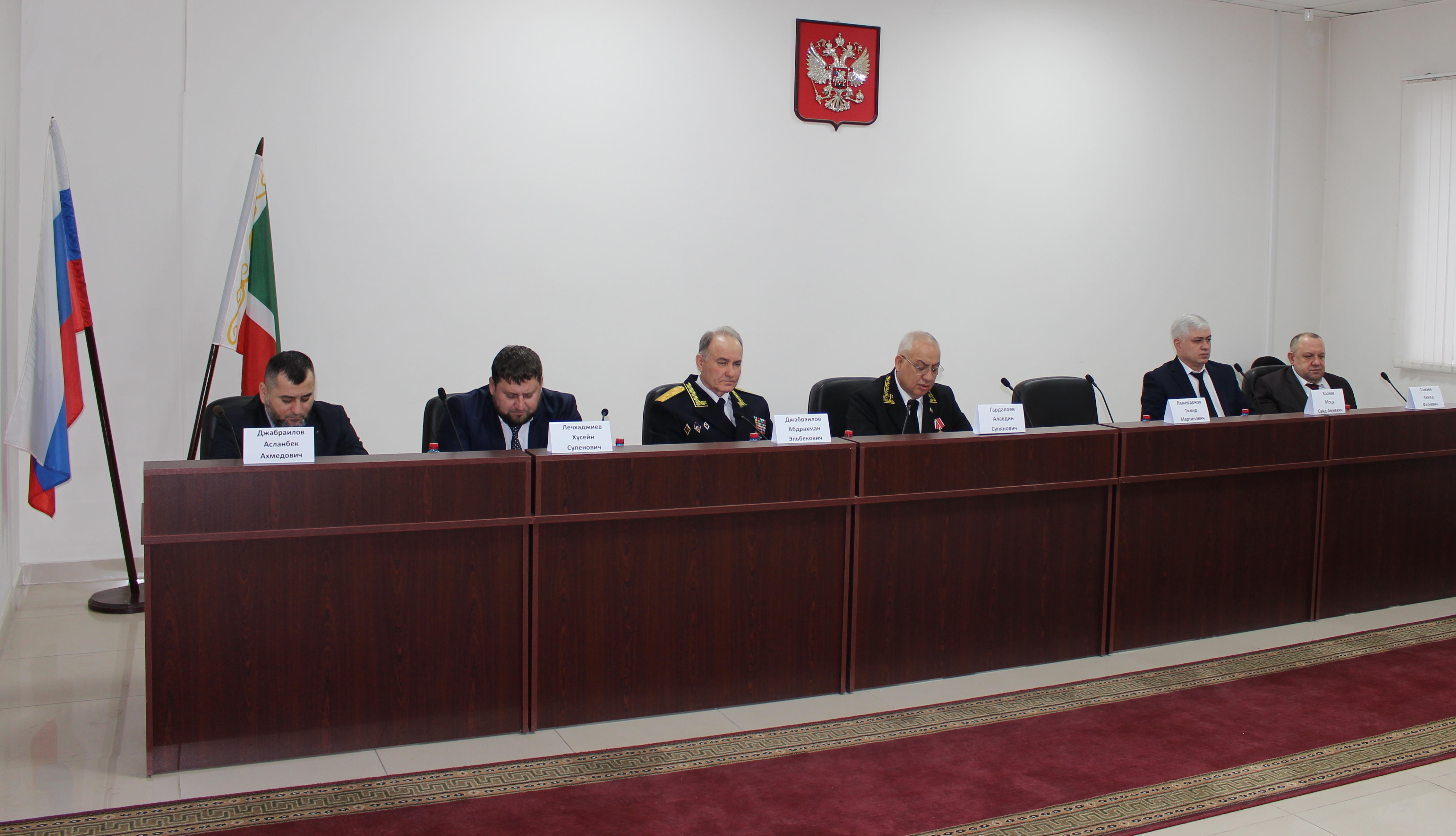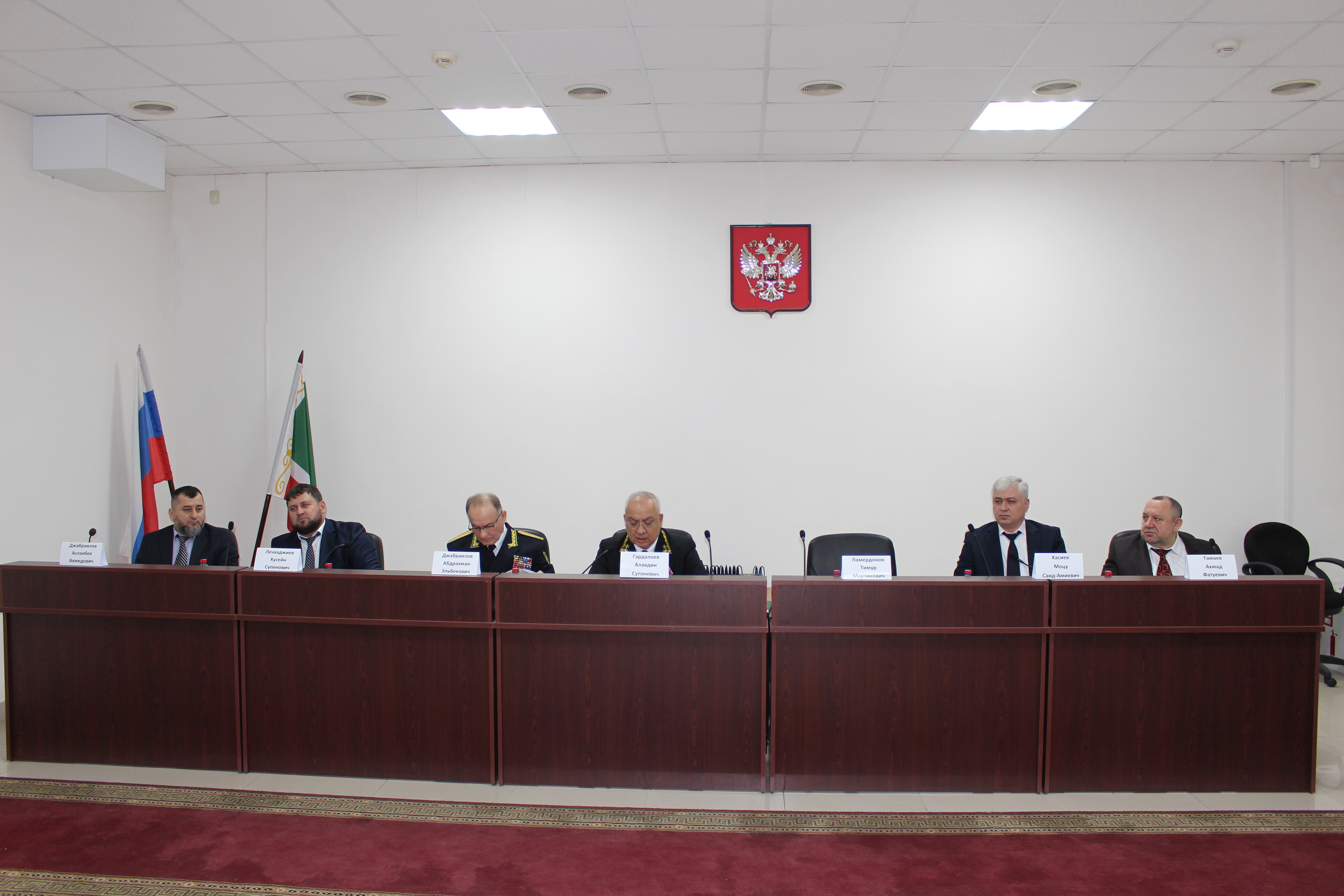 9 декабря 2025 года в Управлении Судебного департамента в Чеченской Республике состоялось совместное совещание Руководства Верховного Суда Чеченской Республики, Управления Судебного департамента в Чеченской Республике, Арбитражного суда Чеченской Республики и Грозненского гарнизонного военного суда, с участием председателей районных (городских) судов Чеченской Республики, Службы обеспечения деятельности мировых судей, старших мировых судей, филиала Федерального государственного бюджетного учреждения "Информационно-аналитический центр» Судебного департамента в Чеченской Республике, а также ответственных сотрудников за взаимодействие со средствами массовой информации. В совещании приняли участие Начальник Управления Судебного департамента в Чеченской Республике А.Э. Джабраилов, Председатель Верховного Суда Чеченской Республики А.С. Гардалоев, и.о. председателя Арбитражного суда Чеченской Республики М.С.-А. Хасиев, Руководитель Службы обеспечения деятельности мировых судей Чеченской Республики Х.С. Лечхаджиев, заместители начальника Управления Судебного департамента в Чеченской Республике, председатели районных (городских) судов Чеченской Республики и Грозненского гарнизонного военного суда, старших мировых судей, заместитель директора филиала ФГБУ «ИАЦ СД» в Чеченской Республике, ответственные сотрудники за взаимодействие со средствами массовой информации, а также работники Управления Судебного департамента в Чеченской Республике. На совещании были рассмотрены следующие вопросы: 1. Координация вопросов, связанных с организацией деятельности Объединенной пресс-службы судов Чеченской Республики; 2. Размещение информации о деятельности судов и текстов судебных актов на официальных веб-сайтах районных (городских) судов Чеченской Республики в течение 2024 года и первого полугодия 2025 года; 3. Меры по активизации использования судами электронных сервисов для отправки почтовой корреспонденции; 4. Вопросы, связанные с организацией архивного делопроизводства в районных (городских) судах Чеченской Республики и Грозненском гарнизонном военном суде, включая соблюдение установленных сроков уничтожения архивных документов с истекшими сроками хранения; 5. Иные вопросы. В ходе указанного совещания Начальник Управления Судебного департамента в Чеченской Республике А.Э. Джабраилов, в соответствии с приказом Генерального директора Судебного департамента при Верховном Суде Российской Федерации В.А. Иванова № 642-л/с от 18.06.2024 г., вручил медаль «За безупречную службу» Председателю Верховного Суда Чеченской Республики А.С. Гардалоеву.