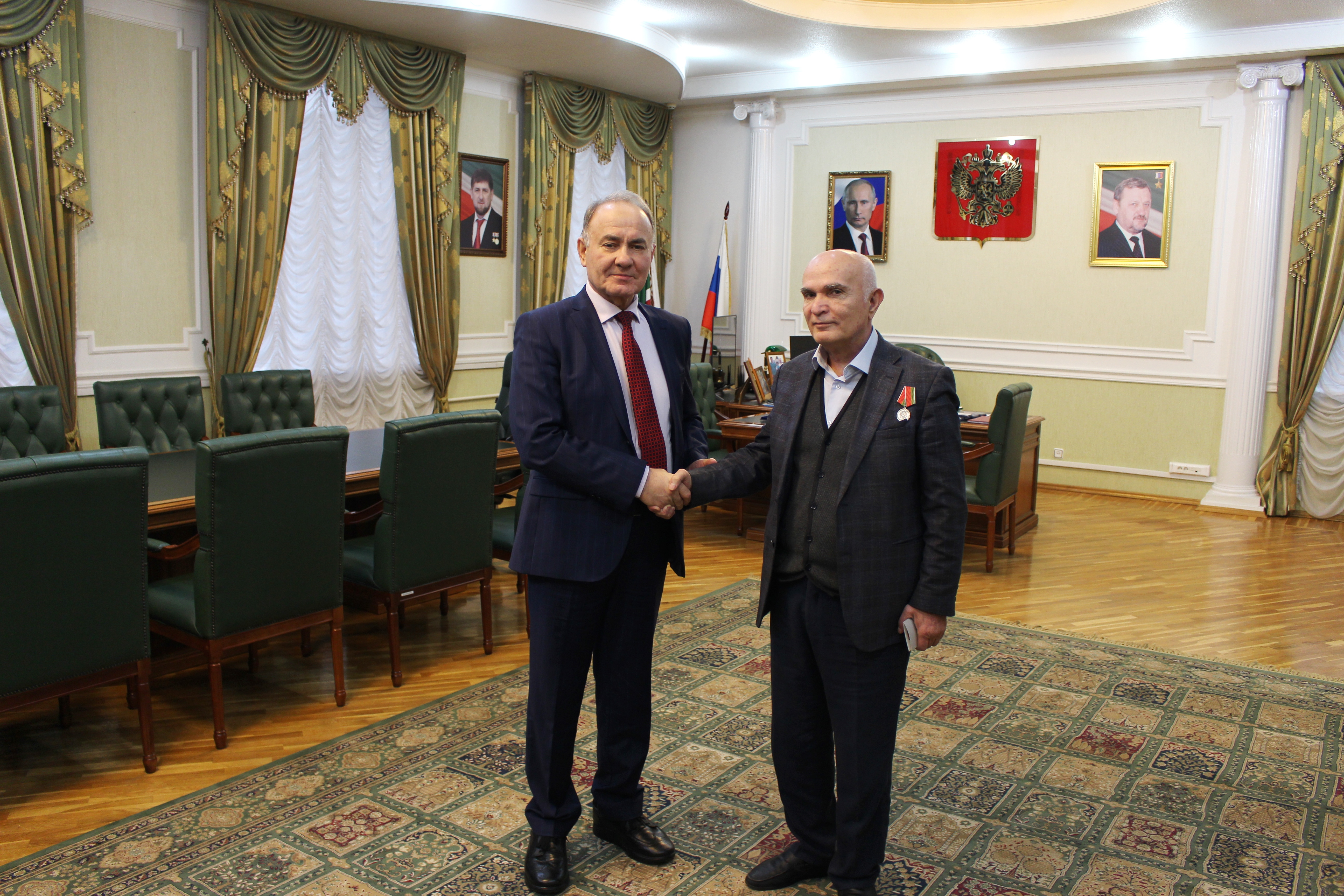 В ходе встречи обсуждались вопросы санаторно-курортного лечения и медицинского обслуживания судей в отставке, а также перспективы развития судебной системы в регионе. Особое внимание было уделено социальной поддержке ветеранов судебной системы, их нуждам и потребностям. А.Э. Джабраилов выразил благодарность Т.А. Гетаеву за многолетний труд и значительный вклад в укрепление законности и правопорядка в Чеченской Республике. Он подчеркнул, что опыт и знания Т.А. Гетаева имеют большую ценность для молодого поколения юристов и судей. Т.А. Гетаев, в свою очередь, поделился своими воспоминаниями о работе в судебной системе, рассказал о наиболее сложных и интересных делах, которые ему довелось рассматривать. Он отметил позитивные изменения, произошедшие в судебной системе за последние годы, и выразил уверенность в ее дальнейшем развитии. По итогам встречи А.Э. Джабраилов в соответствии с Приказом Генерального директора Судебного департамента при Верховном Суде Российской Федерации вручил Т.А. Гетаеву медаль «20 лет Судебному департаменту при Верховном Суде Российской Федерации». |